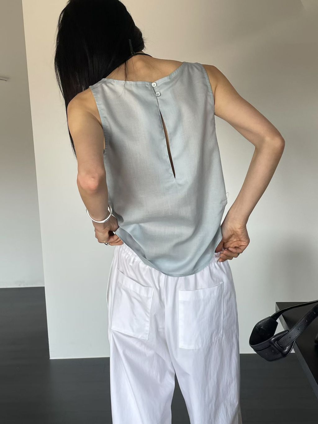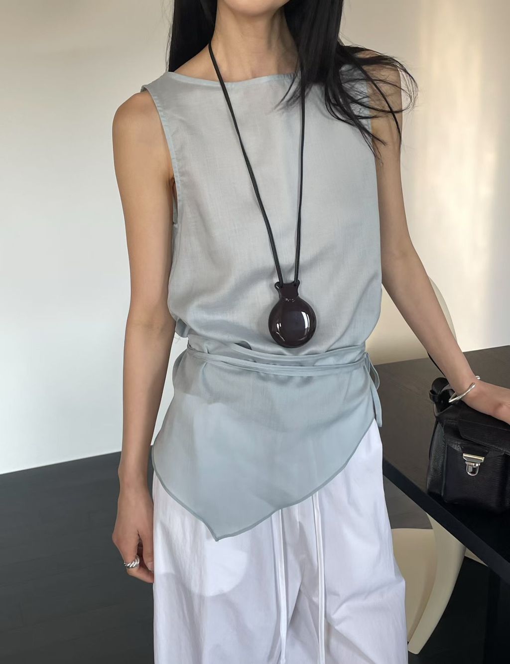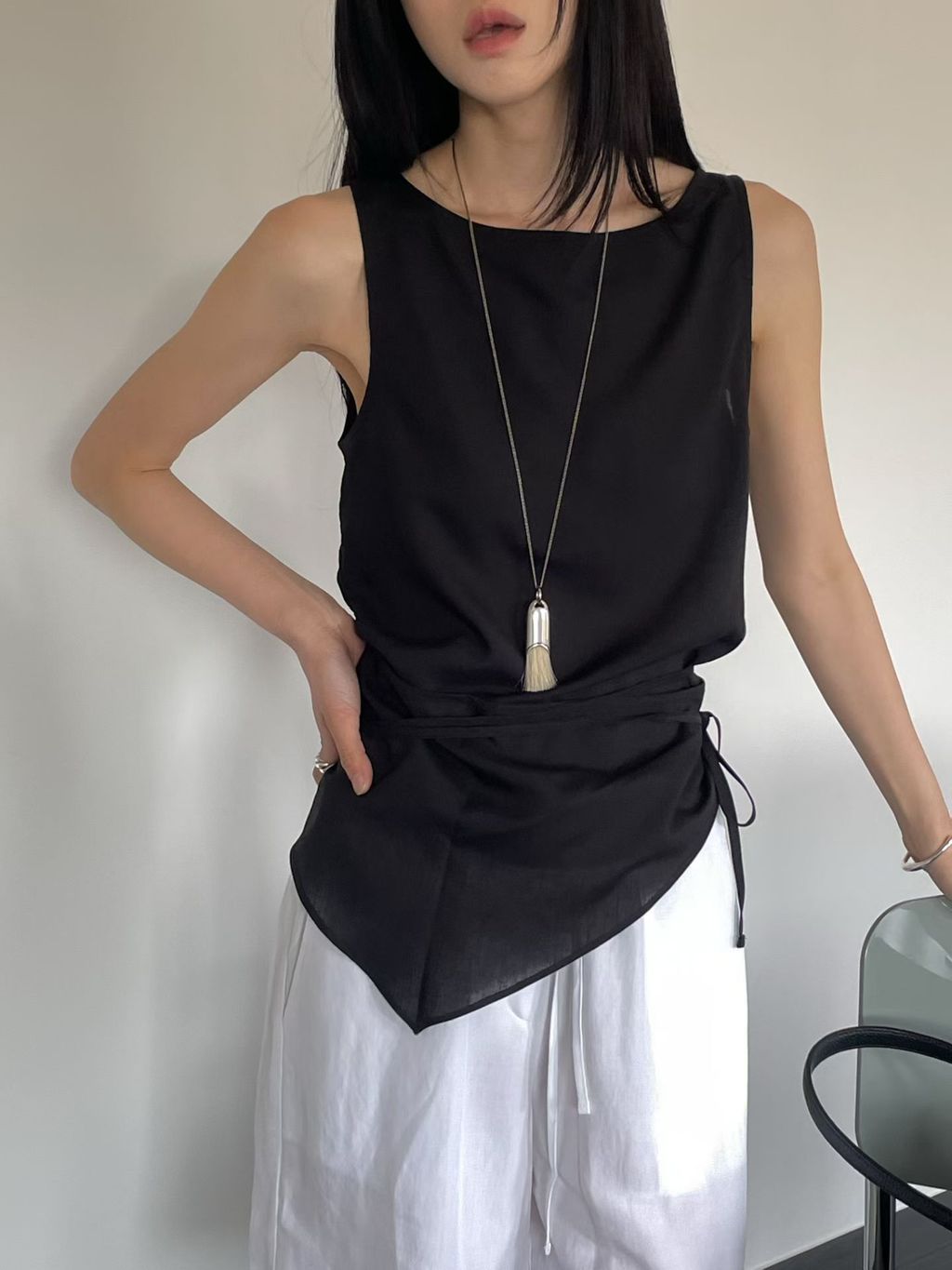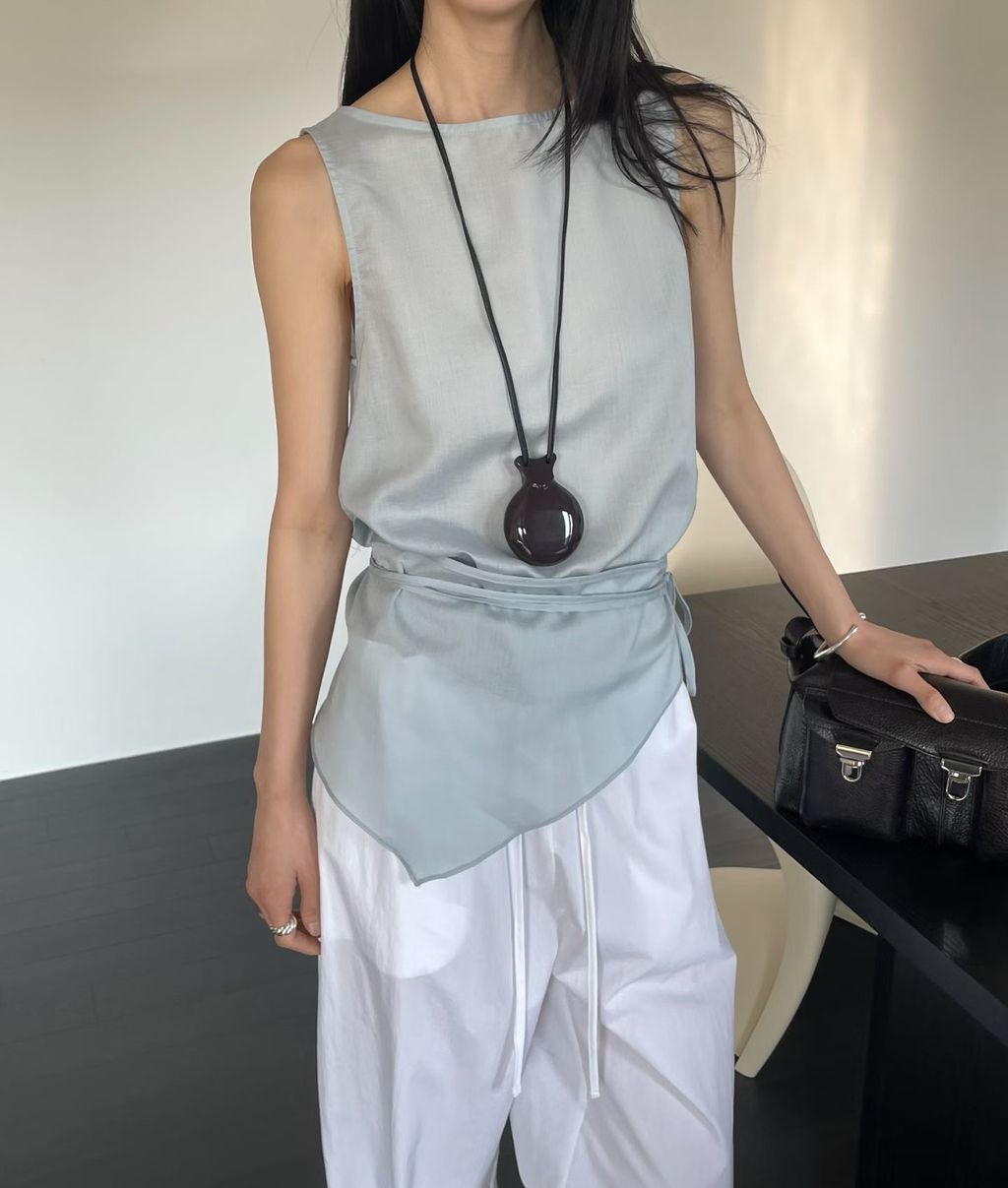 附綁巾腰抓皺設計背心|2 colors
